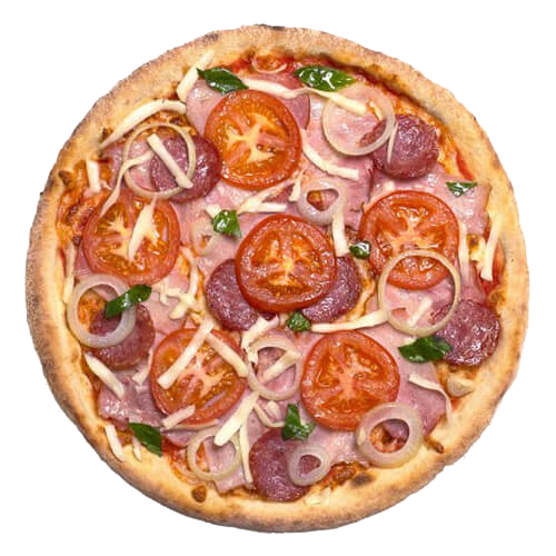 Італійські томати, моцарела, шинка, бекон, салямі, цибуля, помідор.